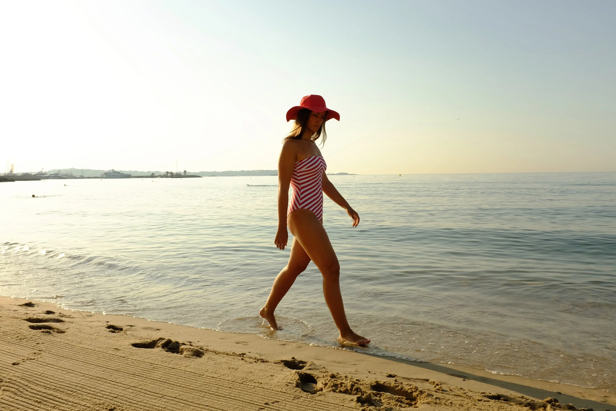 NOTRE PLAGE EST UNE PLAGE DE SABLE FIN AVEC UNE VUE PANORAMIQUE SUR LE CAP D’ANTIBES, LES ÎLES DE LERINS, ET LA POINTE DE CANNES.